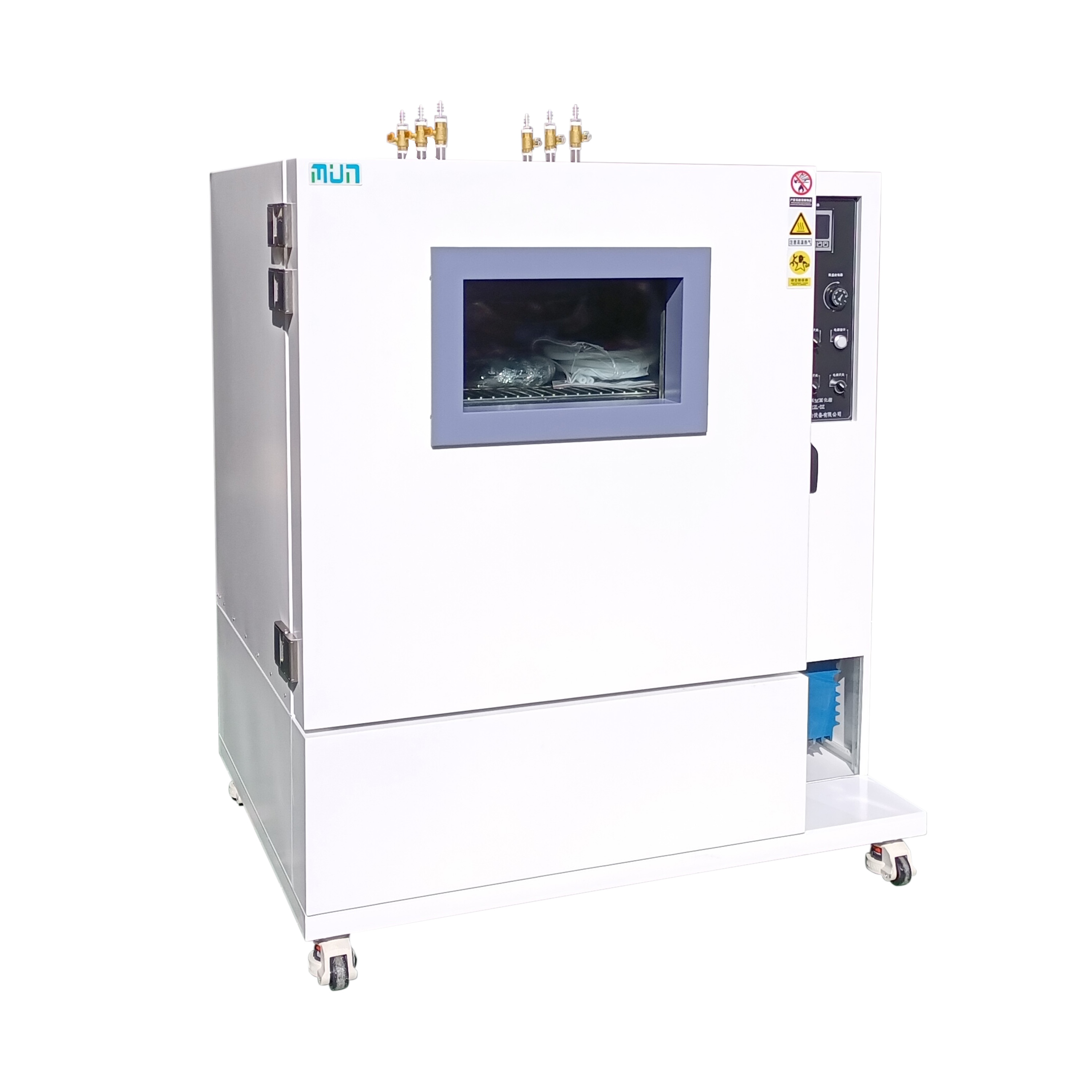7. 箱門設有方形雙層鋼化玻璃觀察窗,能清晰觀察箱內加熱的物品,又有良好的隔熱效果。能有效避免灼傷操作人員。